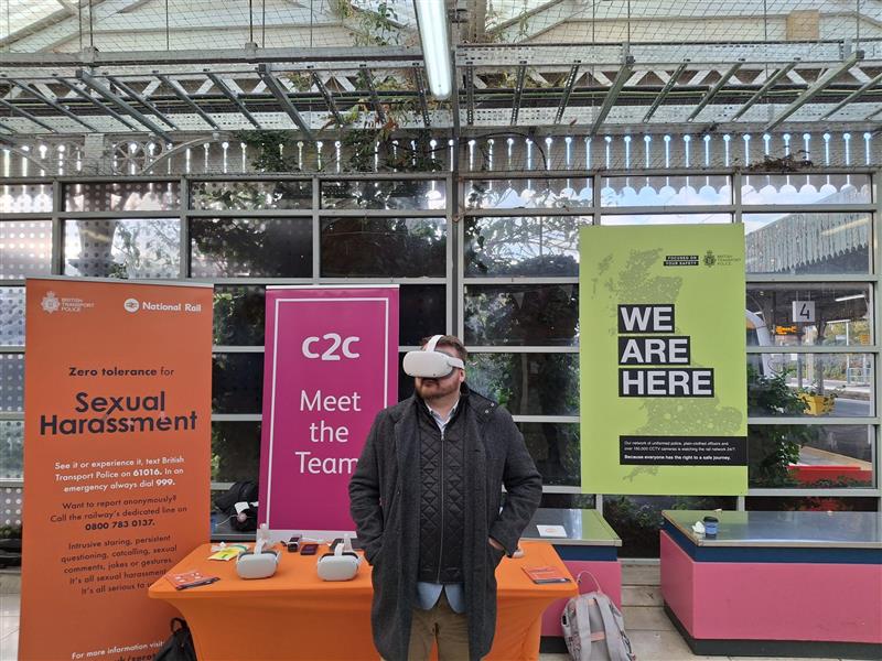 The event was held at Southend Central station on Thursday 23 October, with customers and colleagues invited to wear a VR headset and view one of three possible scenarios of sexual harassment. The film empowers people to consider how they could intervene safely and report perpetrators, while the scenarios have been designed to be experienced from the perspective of both victim and bystander.